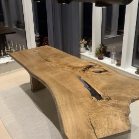Massivt ekbord tillverkat av en enda sammanhängande ekslab med naturlig kant och kraftfull ådring.